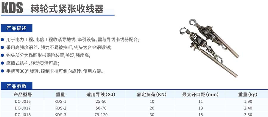 KDS棘輪式緊張收線器